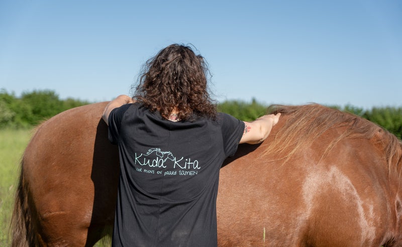 Teddy is geen gewoon paard. Ze is zachtaardig, gevoelig en diep geaard. Haar aanwezigheid werkt als een spiegel voor je ziel. Ze voelt feilloos aan wat er in jou speelt en reageert daarop op een pure, intuïtieve manier. Ze brengt je direct in contact met je lichaam, je emoties en je innerlijke rust. Teddy is een healer – krachtig, zuiver en zonder oordeel.